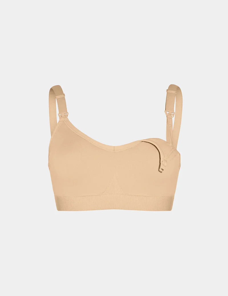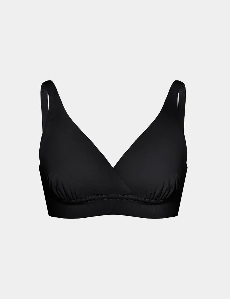 Designed to provide maximum support with higher cup coverage, wider side panels, and a secure band to prevent spillage.