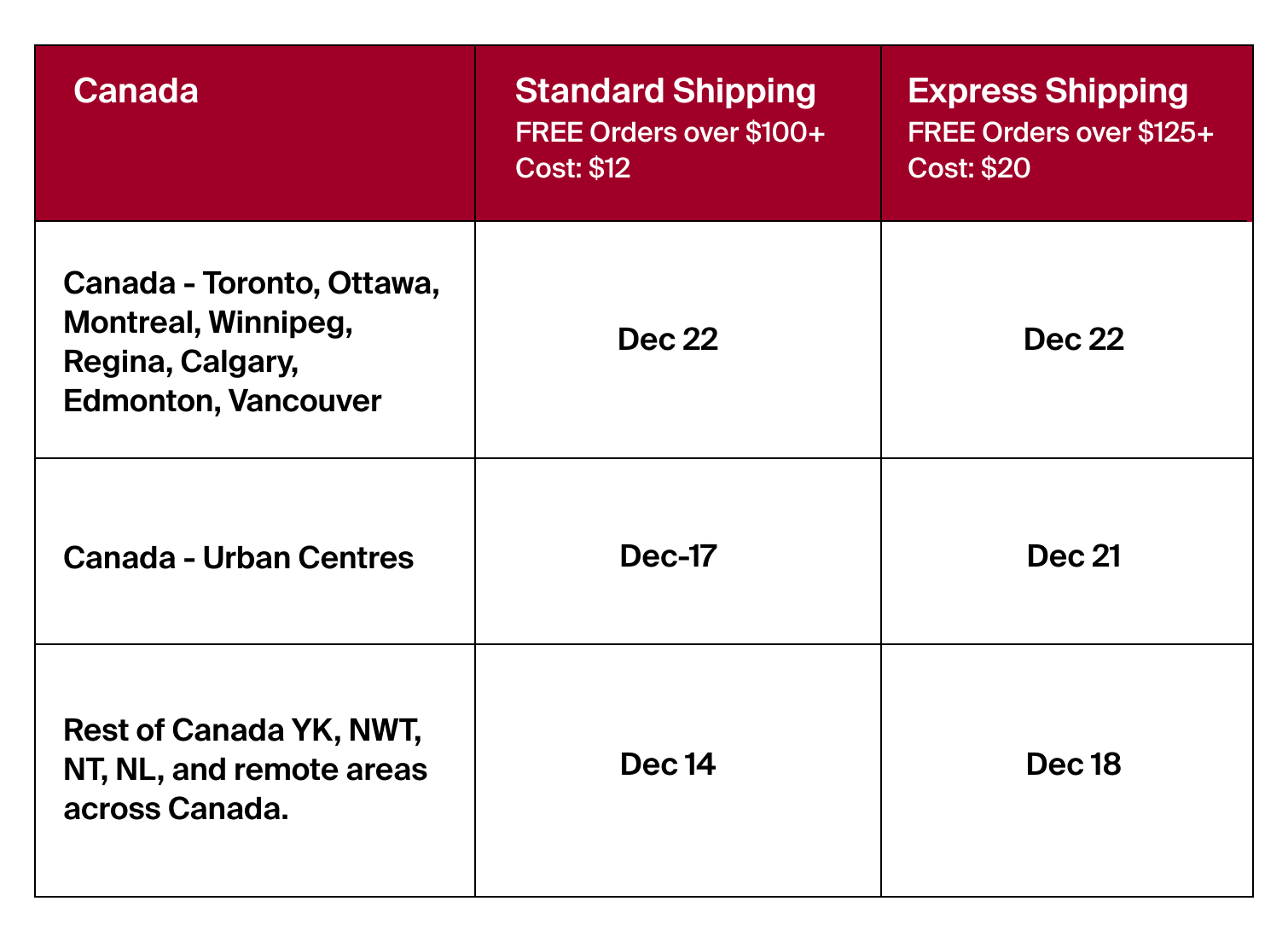 Holiday Shipping