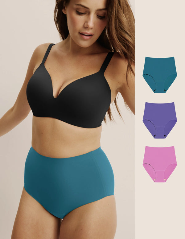 A flattering high-rise bikini bottom featuring a waistband with sculpting properties, high-cut leg and cheeky bum coverage.