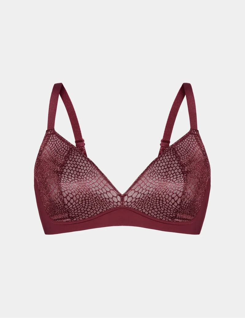 With a flattering deep V neckline. Soft, stretchy lace that’s literally wear-all-day-and-night material so you can feel like your best self and get that Knixy™ look.