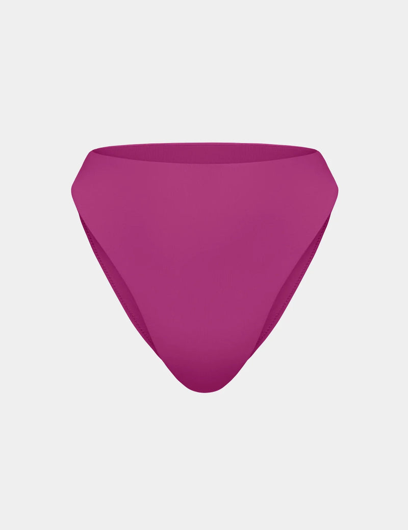 A comfortable mid-rise bikini bottom that elongates your legs with a super high cut and cheeky bum coverage.