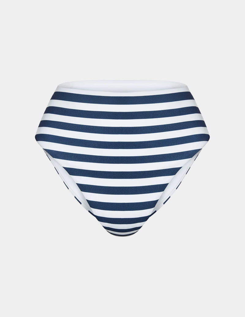 A flattering high rise bikini bottom that has gentle tummy smoothing across the front, with mid-cut leg and cheeky bum coverage.