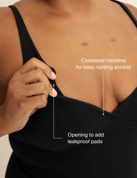 Featuring a convenient neckline with a crossover center for easy nursing access and an opening for leakproof pads. The adjustable straps and no back closure make it comfortable for overnight wear.