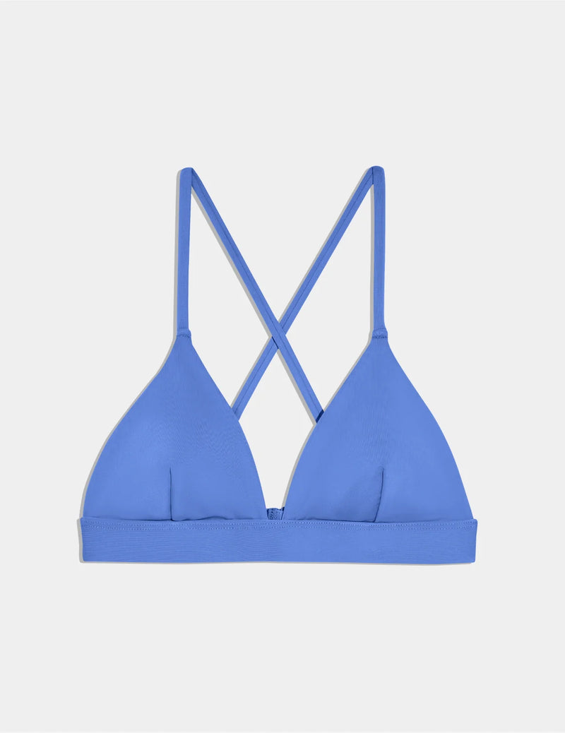 An update to the classic triangle bikini top featuring criss-cross straps and underband support with removable cups.