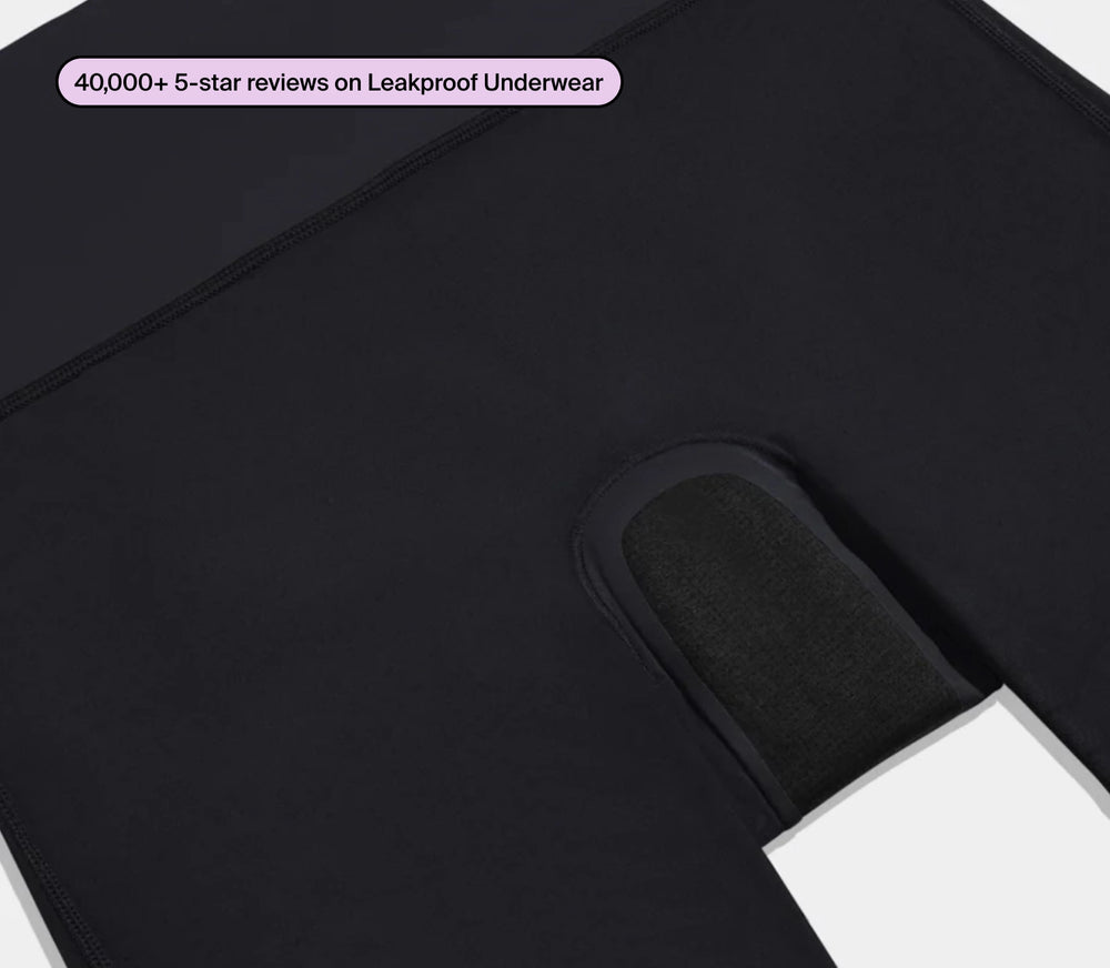 Stretch performance fabric and built-in leakproof protection absorb about 2.5 super tampons worth of liquid.