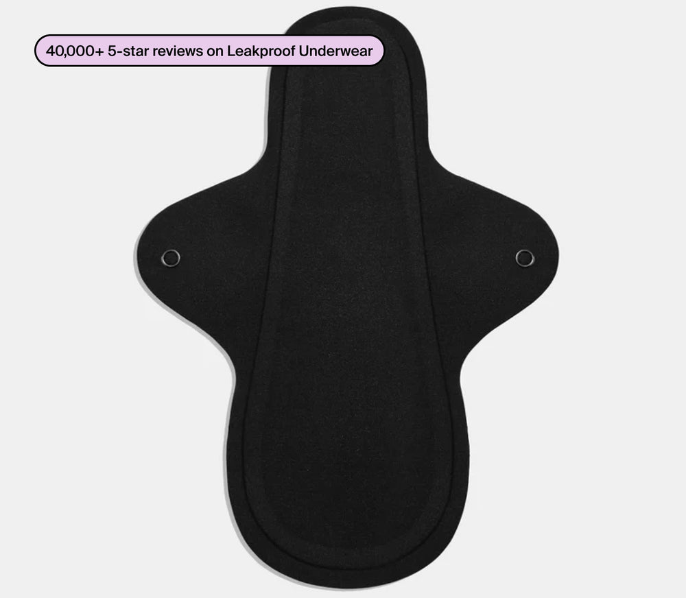 An ultra-thin, reusable pad with an easy snap closure for leakproof, stain-free security.
